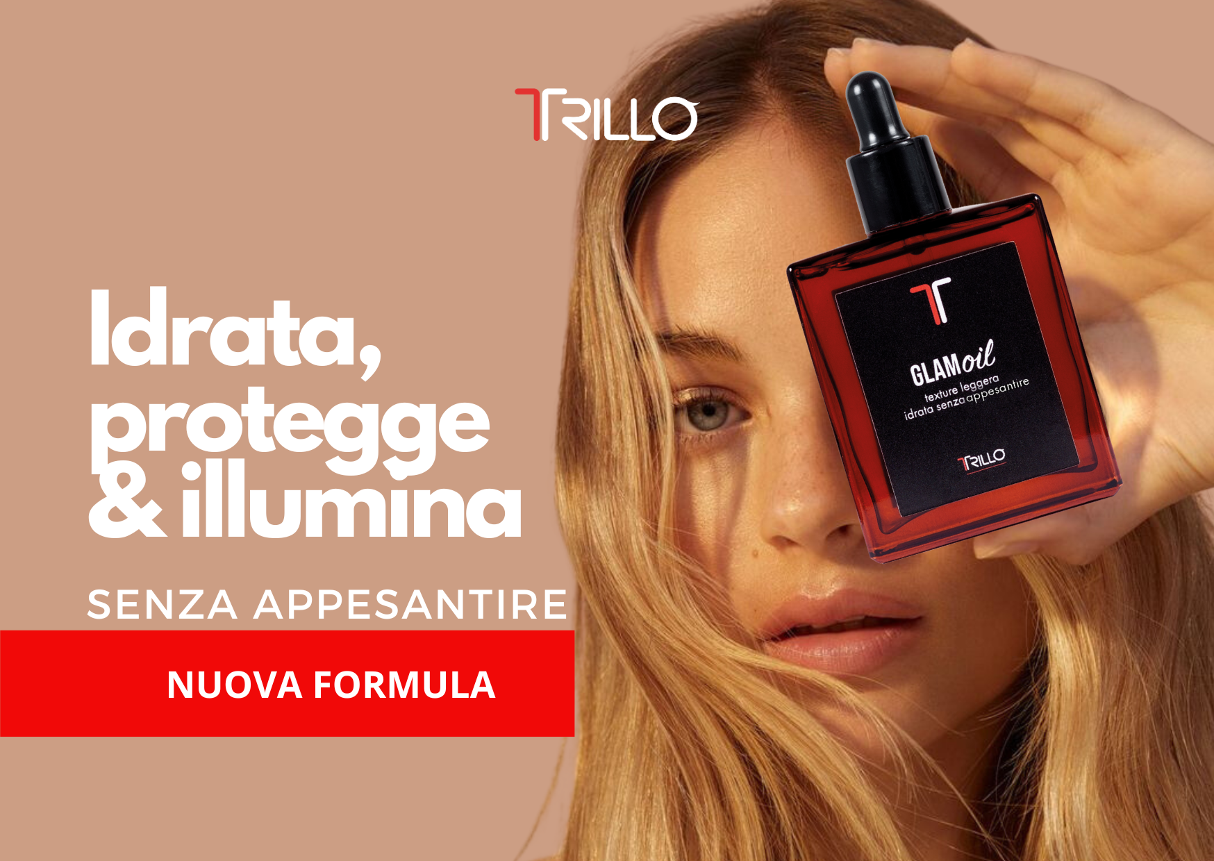 GlamOil non è il solito olio per capelli. No, GlamOil è la risposta definitiva a tutti quei problemi che hai sperimentato. Abbiamo riformulato la nostra formula X3 proprio per mantenere la promessa che altri prodotti non riescono a mantenere: un olio per capelli che idrata, protegge e ripara SENZA UNGERE minimamente.